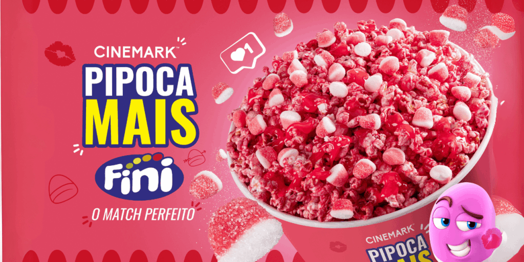 “A Fini já é nossa parceira de longa data. Sempre esteve presente no nosso snack bar, compondo parte de nossos combos temáticos. Esta colaboração para Pipoca Mais marca um passo além. Com ela, conseguimos criar um produto único e elevar ainda mais a experiência dos nossos clientes ao unir produtos imbatíveis: a pipoca da Cinemark, que é o carro-chefe da nossa bomboniere, e também os Fini Beijos, uma das principais delícias da Fini., comenta João Vitor Trevisan, diretor de Alimentos e Bebidas da Cinemark.
