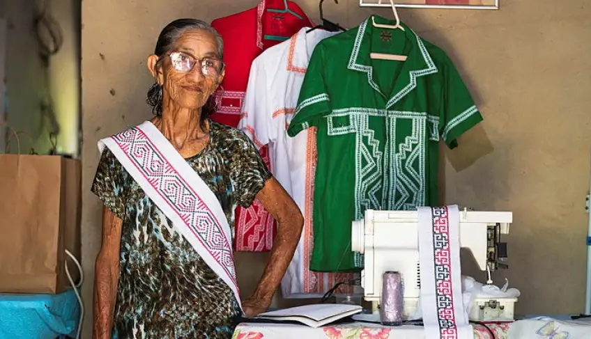 Em Soure, Maria da Cruz Silva Gurjão, a dona Cruz, é reconhecida como a costureira mais antiga em atividade e quem mantém vivo o legado da produção dessas tradicionais camisas. Com 77 anos recém-completados, ela mostra uma energia firme ao dividir seu tempo entre os pedais das máquinas com o cuidado com seus animais: as galinhas que convivem em perfeita harmonia em seu pequeno quintal com a Pantera, seu pitbull de estimação.