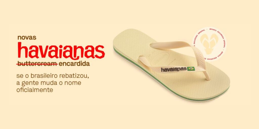 E, para entrar na brincadeira, a marca decidiu abraçar o novo nome, alterando oficialmente a descrição do produto no e-commerce para Chinelo Encardido. O site também terá comunicação focada no item, com banners contextualizando sobre a brincadeira. Além das postagens em redes sociais com o objetivo de engajar a comunidade.