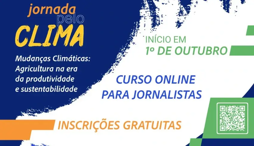 A Embrapa e o Sebrae abriram as inscrições para o curso gratuito e online “Mudanças Climáticas: Agricultura na era da produtividade e sustentabilidade”. É uma oportunidade para profissionais da imprensa aprofundarem o conhecimento nestas temáticas, com conteúdos práticos e especialistas que irão traduzir a ciência, dados inéditos e experiências reais em jornalismo de impacto. O curso, que acontece de 1º a 31 de outubro, é 100% online e voltado para jornalistas de todo o Brasil e estrangeiros que tenham o domínio da Língua Portuguesa. As inscrições podem ser feitas neste link até 30 de setembro.