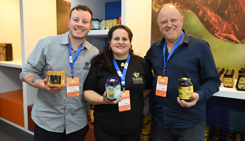 A apicultora Rislaine Silva representou um dos 36 pequenos negócios presentes ao evento. Com a marca catarinense Rainha da Flor, ela produz mel que há quatro anos e conquistou o selo de Indicação Geográfica com o Mel de Melato de Bracatinga.