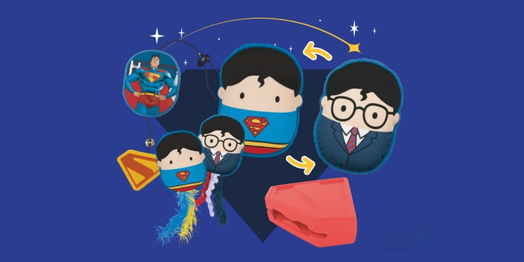 Com a estreia do novo filme, a Petiko apresenta uma linha pensada para que tutores compartilhem o querido Super Herói da DC com seus pets. Para os cães, a marca criou uma pelúcia dupla face que alterna entre Clark Kent e Superman, além de um brinquedo 2 em 1 em formato do icônico escudo do herói, que funciona como mordedor e porta petiscos. Já para os gatos, a linha inclui itens temáticos como a clássica pelúcia leve, repaginada com elementos visuais inspirados no personagem.